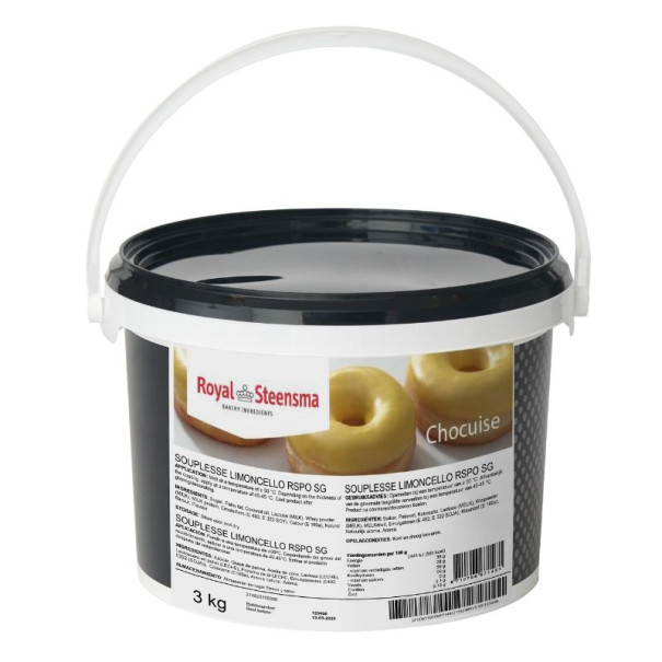 Pot de 3kg de glaçage saveur limoncello Soupless Royal Steensma. Pâte à glacer souple, polyvalente et facile à utiliser