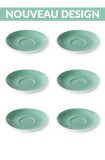 Set x 6 soucoupes en porcelaine coloris vert de 140 mm, pour tasse Acme Flat White 150ml, Tulip 170ml et Cappuccino 190ml. Vendu par carton de 6 soucoupes.