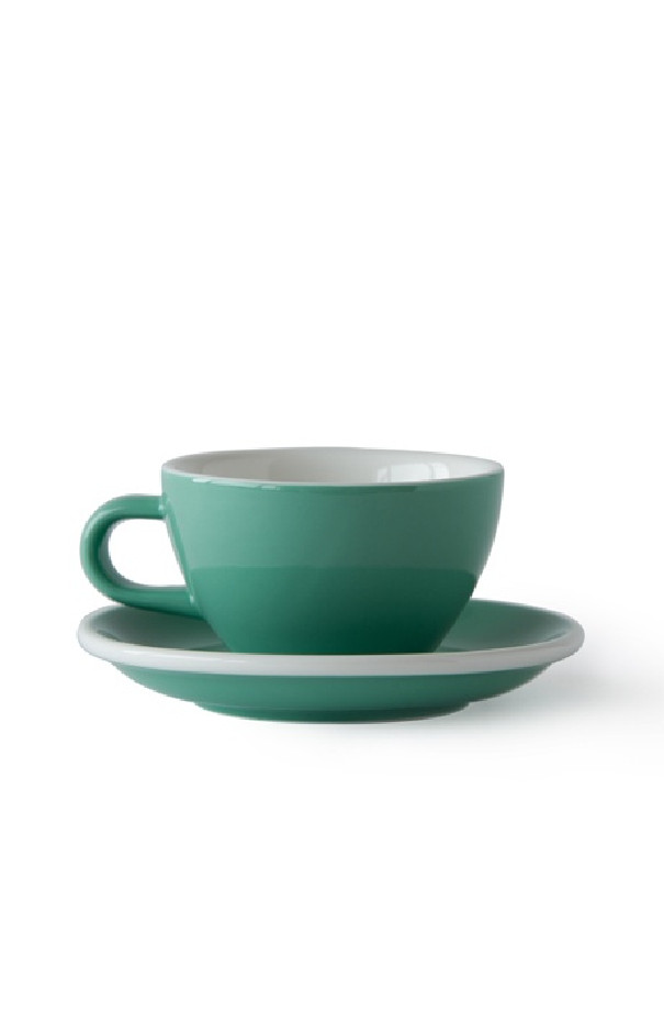 Set x 6 tasses en porcelaine coloris vert avec anse de 190ml. Idéal pour les cappuccino, les petits latte ou les grands flat white. Vendu par carton de 6 tasses.